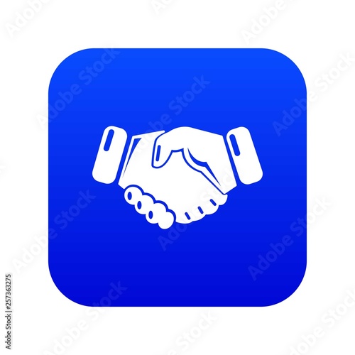 Handshake ice hockey icon blue vector isolated on white background