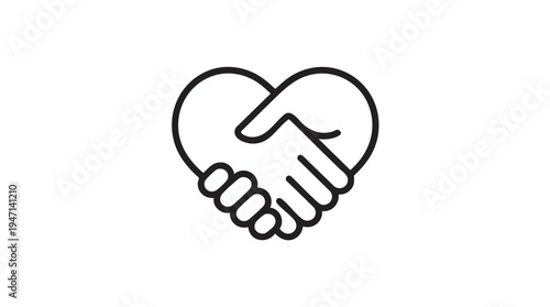 Handshake in heart shape minimalist line art on white background for love and partnership