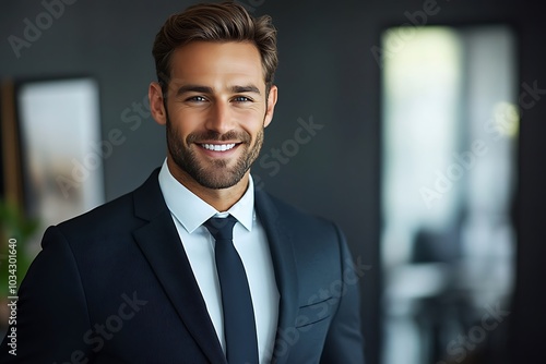 Handsome Businessman in Stylish Suit Smiling Confidently