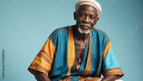 handsome elderly african guy on summer outfit fashion style on plain bright studio background