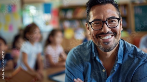 teacher, school, elementary, portrait, man, happy, young, classroom, class, job, career, occupation, childhood, learning, pupil, adult, profession, high, lesson, academic, smiling, childcare center, background, cognition, board, cheerful, secondary, white, male, prof, photogenic, caucasian, middle-aged, latin, goggles, educational, desk, pretty, development, blurred, classmate, learn, schoolchild, sitting, teaching, smile, children, children, education