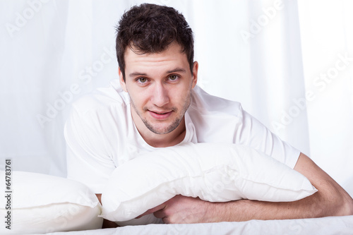 Handsome man in bed