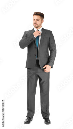 Handsome man in formal suit on white background