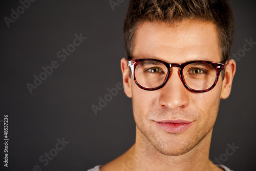 Handsome man in gray tank top with smile