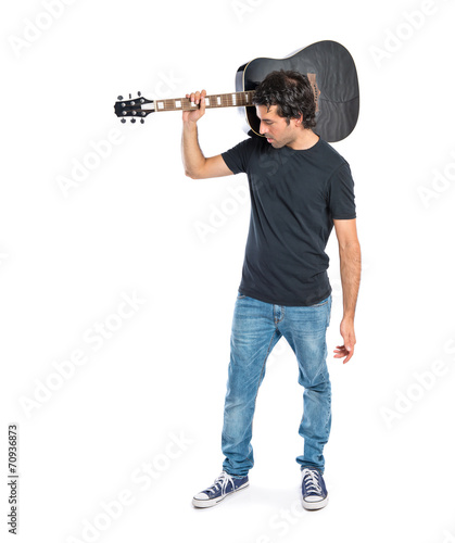 guitar, music, isolated, young, acoustic, instrument, rock, artist, sound, song, musical, melody, playing, musician, background, play, player, guitarist, people, human, person, man, model, male, adult, fresh, hispanic, attractive, caucasian, natural, clean, studio, photogenic, latin, fashion, art, white, jean, racked, standing, brunette, 1