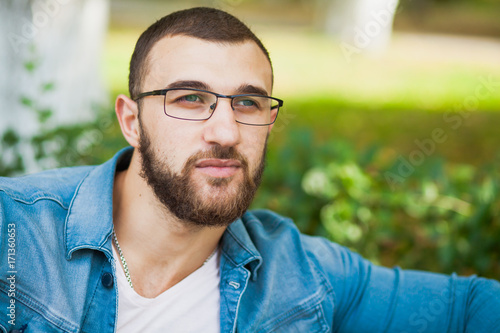 man, young, photogenic, street, urban, guy, casual attire, fashion, background, jean, shirt, male, white, happy, beard, stylish, smile, hair, attractive, model, man, portrait, lifestyle, smiling, masculine, bearded, people, city, style, person, summer, adult