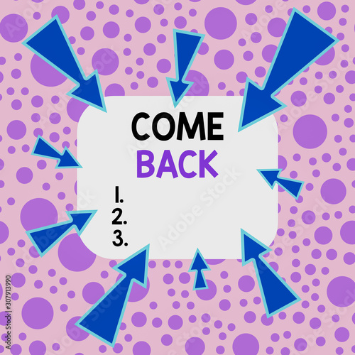 Handwriting text Come Back. Conceptual photo asking for a demonstrating to return place where love ones resides Asymmetrical uneven shaped format pattern object outline multicolour design