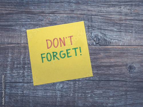 Handwriting text writing Don T Forget. Plain note paper on the top of wooden table desk