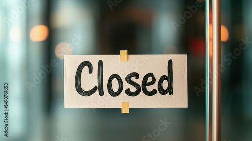 Handwritten Closed Sign on Frosted Glass Door of Cozy Cafe in Modern Setting