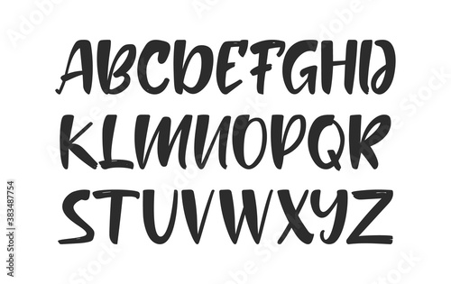 Handwritten ink brush Font. English Alphabet letters on white background.
