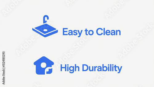 Hanging items and house icons represent easy cleaning and high durability, suitable for home product promotion and performance demonstration scenarios.