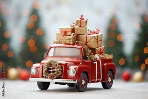 happines santa claus riding truck car bought big bag gift boxes