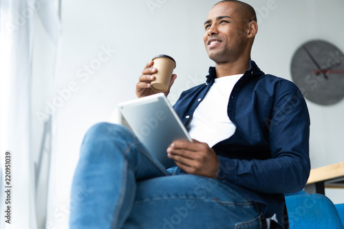 person, black, computer, business, professional, african, young, smart, adult, elegance, indoor, manager, modern, office, work, men at work, tablet, man, holding, afro, businessman, technology, standing, cheerful, smiling, success, laptop, lifestyle, casual attire, clothing, confidence, descent, ethnicity, expertise, idea, intelligence, man, occupation, 1, only, place, striped, stubble field, guy, happy, ethnic, american, confident, collar