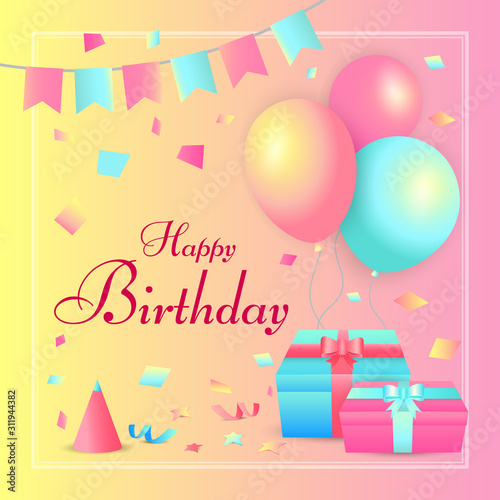 birthday, happy, balloon, gift, celebration, party, card, holiday, balloon, decoration, love, pink, box, illustration, red, valentine, colourful, blue, present, nubes, day, christmas, fun, ribbon, new