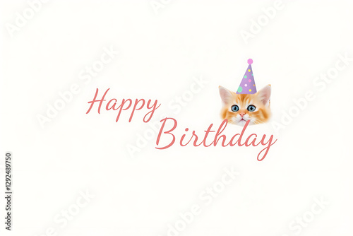 happy birthday, greeting, card, typography, handwritten, calligraphy, elegant, stylish, festive, celebration, party, cat, kitten, pet, cute, adorable, animal, furry, hat, colourful, minimal, background, isolated, white, invitation, design, graphic, creative, playful, fun, digital, print, joyful, cheerful, charming, friendly, cartoon, gift, wishes, surprise, lettering, illustration, template, banner, artwork, commercial