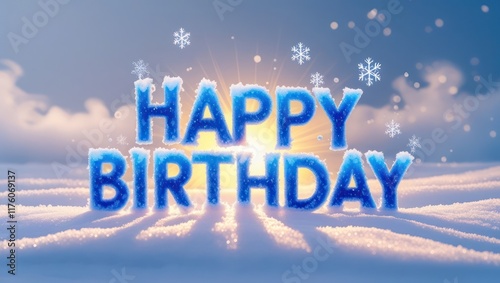 happy birthday, happy, birthday, three-dimensional, word, written, winter, text, blue, cloud, icy, sky, design, illustration, cloud, summer, technology