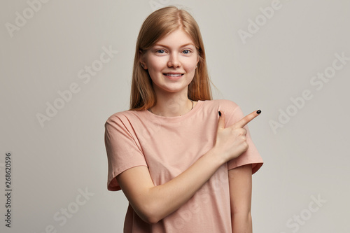 happy, smile, young, girl, female, beautiful, isolated, blond, studio, pointing, woman, portrait, background, cute, pretty, student, excited, horizontal, advertising, emotional, grey, joy, joyful, positive, stylish, surprised, youth, amazed, amazement, gesticulate, finger, trendy, gesture, copy space, style, copy, space, attractive, dark eyes, woman, lady, fair hair, casual attire, lifestyle, people, cheerful, long