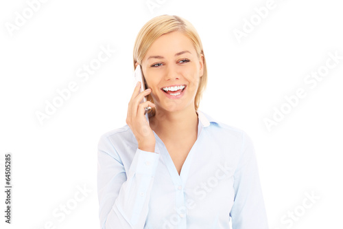 adult, attractive, background, beautiful, business, businesswoman, call, mobile phone, cheerful, communication, female, girl, happy, isolated, mobile, mobile phone, office, 1, people, person, phone, portrait, smiling, talking, phone, white, woman, young, laughing, calling