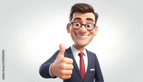 Happy Cartoon Businessman Giving Thumbs Up 3D Render