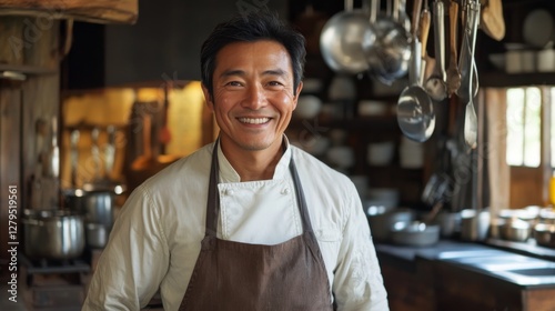 chef, kitchen, happy, smiling, portrait, man, food, eatery, cooking, professional, asian, rustic, cook, interior, expertise, hospitality, industry, career, cookware, home, expert, profession