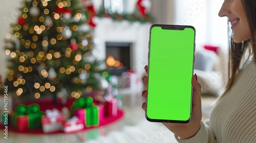 girl, woman, chroma key, smartphone, phone, christmas, santa, new year, screen, sale, discount, promo, app, holiday, festive, tech, digital, touch screen, winter, mobile, offer, gift, shop, buy, card, shopping, people, person, green, display, online, blank, hand, christmas, device, application, empty, mobile phone, holding, greeting, template, message, merry, present
