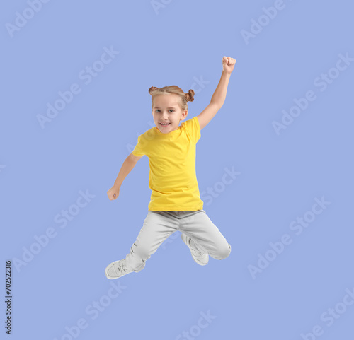 action, active, activity, background, blue, carefree, casual attire, caucasian, cheerful, children, childhood, clothes, colours, cute, education, emotion, energy, fashion, feeling, freedom, full, fun, funny, girl, happiness, happy, joy, joyful, jump, jumping, children, length, lifestyle, light, little, motion, person, play, portrait, positive, primary, school, small, smile, smiling, t-shirt, yellow, young