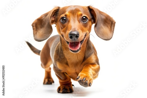 dachshund, dog, puppy, pet, canino, animal, mammal, brown, red, fur, paw, paw, happy, smiling, playful, cute, adorable, funny, friendly, white background, isolated, studio, portrait, closeup, head, tail, ear, nose, tongue, eye, domestic, loyal, companion, purebred, breed, small, medium