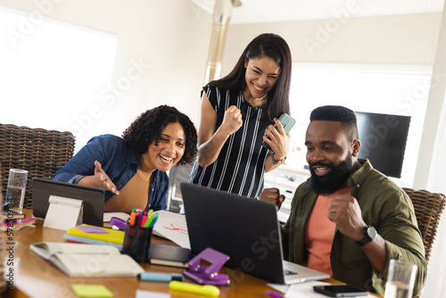 three people, young adult, woman, female, multiracial, man, male, black, people, happy, diverse, friends, celebrate, working, together, home, startup, business, lifestyle, domestic life, friendship, concept, young, person, adult, fun, smiling, happiness, cheerful, technology, smile, modern, friends, family, portrait, leisure, communication, cyberspace, office, attractive, design, using, laptop, remote, domestic, life