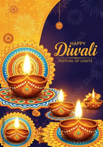 Happy Diwali Festival of Lights Illustration.