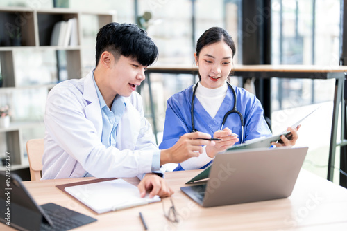2, analysing, care, checking, clinic, clipboard, closeness, colleague, computer, conversation, copy space, corridor, discussing, discussion, doctor, exam, examining, file, happy, health care, holding, hospital, laptop, looking, man, medicals, meeting, men at work, nurse, people, practitioner, report, serious, sitting, speaking, specialist, staff, surgeon, talk, team, teamwork, woman, working, assistant, consulting, intern, medicals, learning, clinical