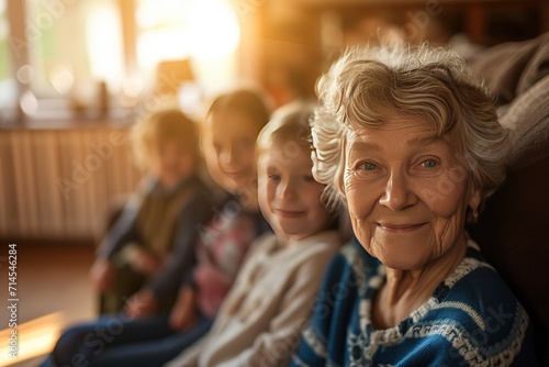 Happy Elderly with Grandchildren Smiling Senior with Loving Family