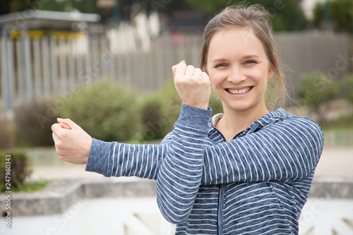 person, woman, female, adult, young, caucasian, sport, lifestyle, concept, training, athlete, activity, stretching, activewear, running, recreation, beautiful, energy, leisure, physical exercise, action, exercise, healthy, attractive, fit, active, health, morning, summer, marathon, flexibility, preparation, arm, aspiration, goal, motivation, determination, hoodie, smiling, content, positive, happy, looking, camera
