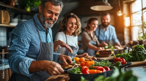food, class, lunch, utensil, fun, board, dinner, lifestyle, organic, apron, vegetable, chef, preparing, flavorful, basil, knife, family, home, smiling, fresh, garlic, homemade, meal, receipe, ginger, kitchen utensile, laughter, bell, at, chopping