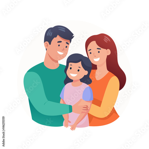 Happy family portrait with parents and child smiling together in a warm and loving embrace