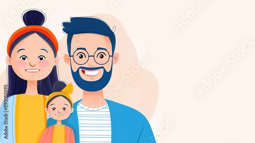 Happy family portrait with smiling parents and a child.