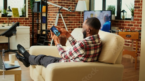 happy, gamer, playing, spaceship, flying, game, smartphone, excited, relaxed, african american, man, cosy, online, sofa, couch, stylish, home, gaming, homely, video game, competitive, warm, nice, apartment, comfortable, screen, brick wall, entertainment, living room, eclectic, modern, digital, interior design, fun, cyberspace, home decor, welcoming, electronic, decor, relaxation, competition, interactive, play, leisure, streamer