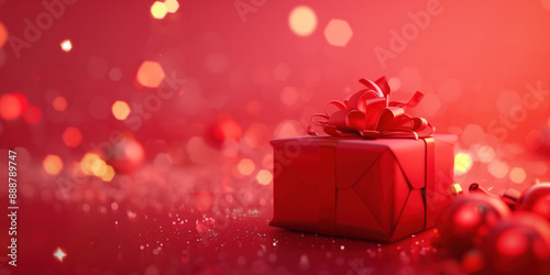 Happy Glamorous Whimsical Cute Partying High Fashion Red Christmas Present with Colorful Vibes and Empty Space in the Middle