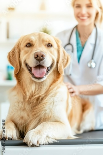 dog, golden retriever, pet, veterinary, clinic, animal, care, vet, happiness, smiling, health care, treatment, indoor, professional, wellness, friends, breed, puppy, fur, nurturing, exam, affection, companionship