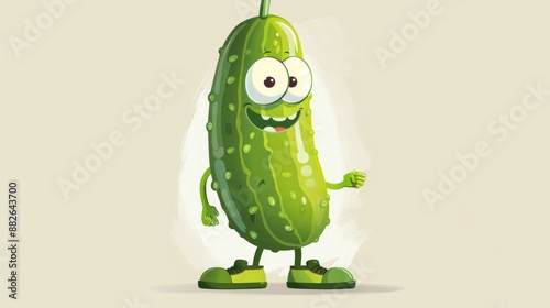 cucumber, cartoon, green, vegetable, happy, grin, sneaker, character, food, illustration, drawing, fun, cute, smiling, joyful, whimsical, colourful, organic, fresh, healthy, alimentary, crisp, juicy, tasty, delicious, summer, garden, farm, produce, natural, bright, funny, energetic, playful, standing, background, light, brown