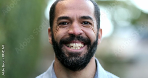 Happy hispanic man spontaneous smile and laugh
