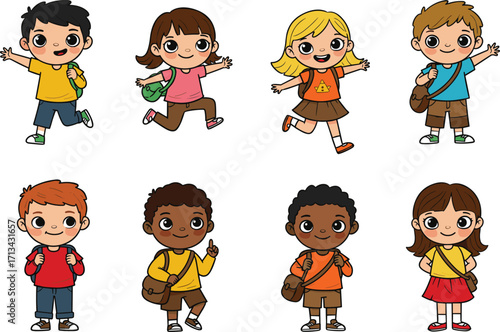 children, school, children, student, backpack, cartoon, education, learning, happy, diverse, boy, girl, walking, play, fun, classroom, childhood, teacher, activity, schoolbag, smile, joy, growth, development, study, class, group, children