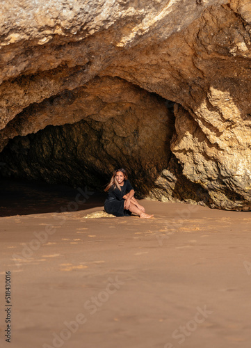 admire, algarve, alone, barefoot beach, beach, calm, carefree, cave, cheerful, chill, cliff, coast, coastline, content, delight, dress, enjoy, female, full body, glad, gorgeous, cave, happy, harmony, holiday, idylli, lady, lifestyle, long hair, looking away, nature, outdoors, peaceful, picturesque, portugal, positive, recreation, relax, rocky, sand, seacoast, smile, style, summer, sunlight, traveler, vacation, woman, young