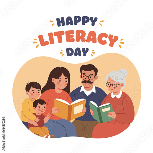 Happy Literacy Day Celebration: Multi-Generational Family Reading Books Together