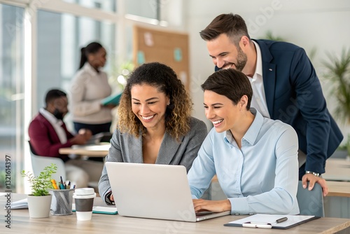 business, laptop, computer, office, people, meeting, group, businesswoman, team, woman, working, businessman, businessperson, smiling, teamwork, sitting, work, together, table, man, communication, looking, technology, colleague, education