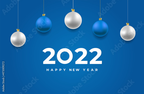 Happy new year 2022 background illustration with Christmas toys. Golden new year icon and garland