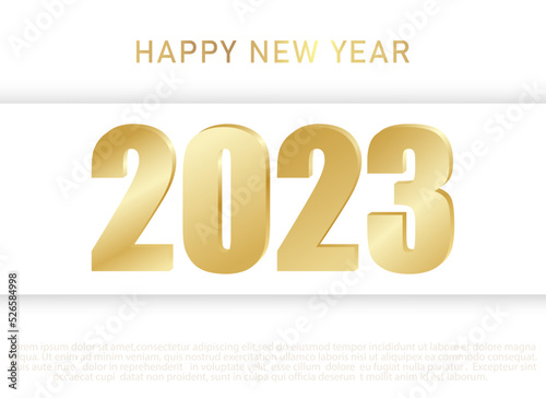 Happy New Year 2023 . Gold numbers on a white background. Vector