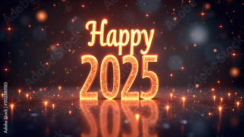 Happy New Year 2025 Glowing Text. Concept of celebration, holiday, and future.