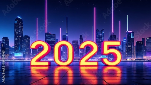 Happy new year 2025 Smart network and Connection business technology city of digital tech background
