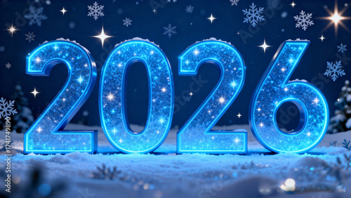 2026, happy new year, celebration, holiday, greeting, card, design, blue, snowflake, star, sparkle, festive, winter, background, light, glowing, bright, cheerful, party, joy, hope, future, countdown, event, decoration, season, happiness, starry, elegant, christmas, holiday season, graphic, shiny, bokeh, beautiful, glistering, digital artwork, illustration