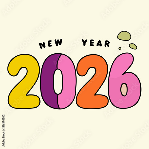 new, year, 2026, celebration, greeting, holiday, festive, countdown, party, event, announcement, design, graphic, illustration, art, colourful, bold, typography, number, winter, season, joy, excitement, future, hope, poster, banner, card, invitation, template, modern, retro, playful, whimsical, fun, bright, yellow, purple, pink, orange, background, simple